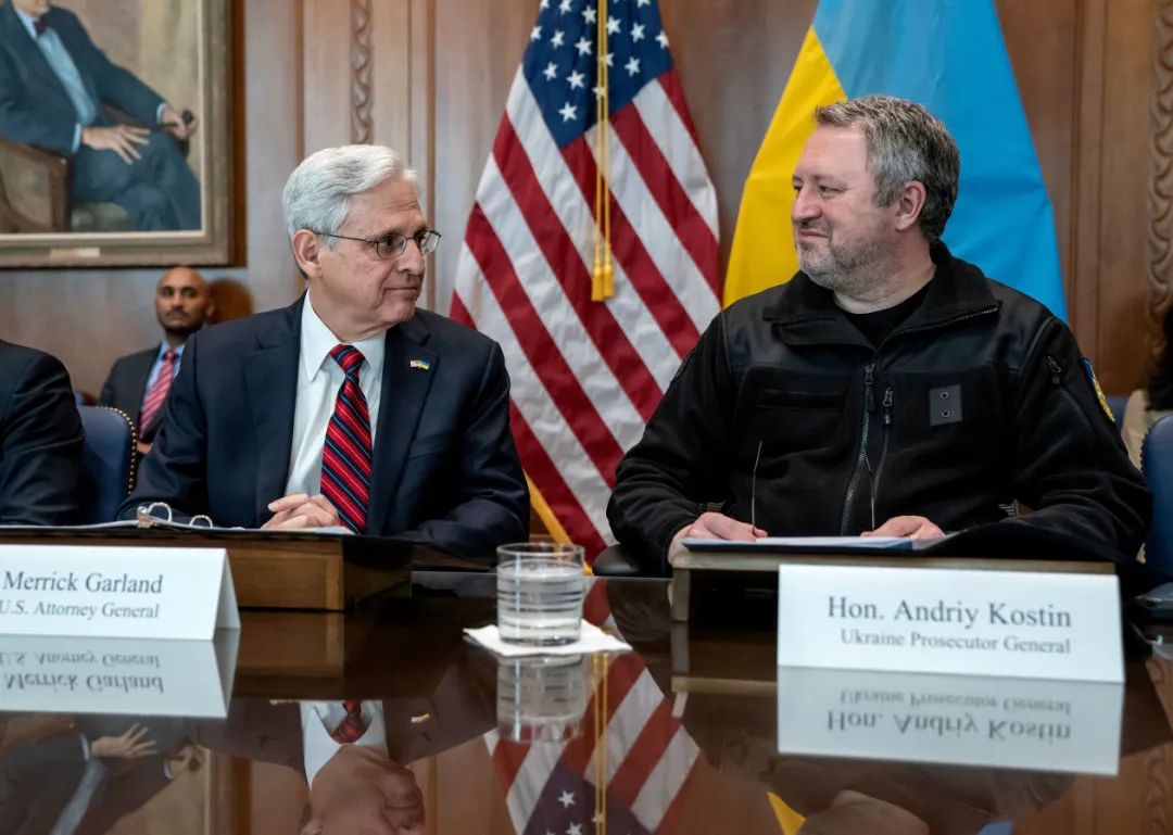 当地时间2月3日,美国司法部长加兰(左)与乌克兰总检察长科斯廷在华盛顿会面 图源:CNN